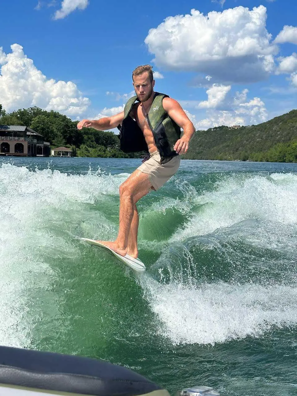 Tried a few different products with limited success due to the fact that my Tige has a concave hull. Suction cups would not hold no matter what we tried. Jared made some custom brackets to allow for the curve and now I have an awesome wave that is twice as long as when the boat was listed alone. I cant wait to get the bracket installed for the port side now….I had no idea that all my friends were goofy foot riders.